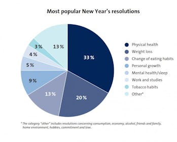 To answer these questions, researchers recruited 1,066 people across Sweden who made resolutions in 2017. Each participant came up with their own resolution. The most popular resolutions were related to physical health, weight loss, and changing eating habits.